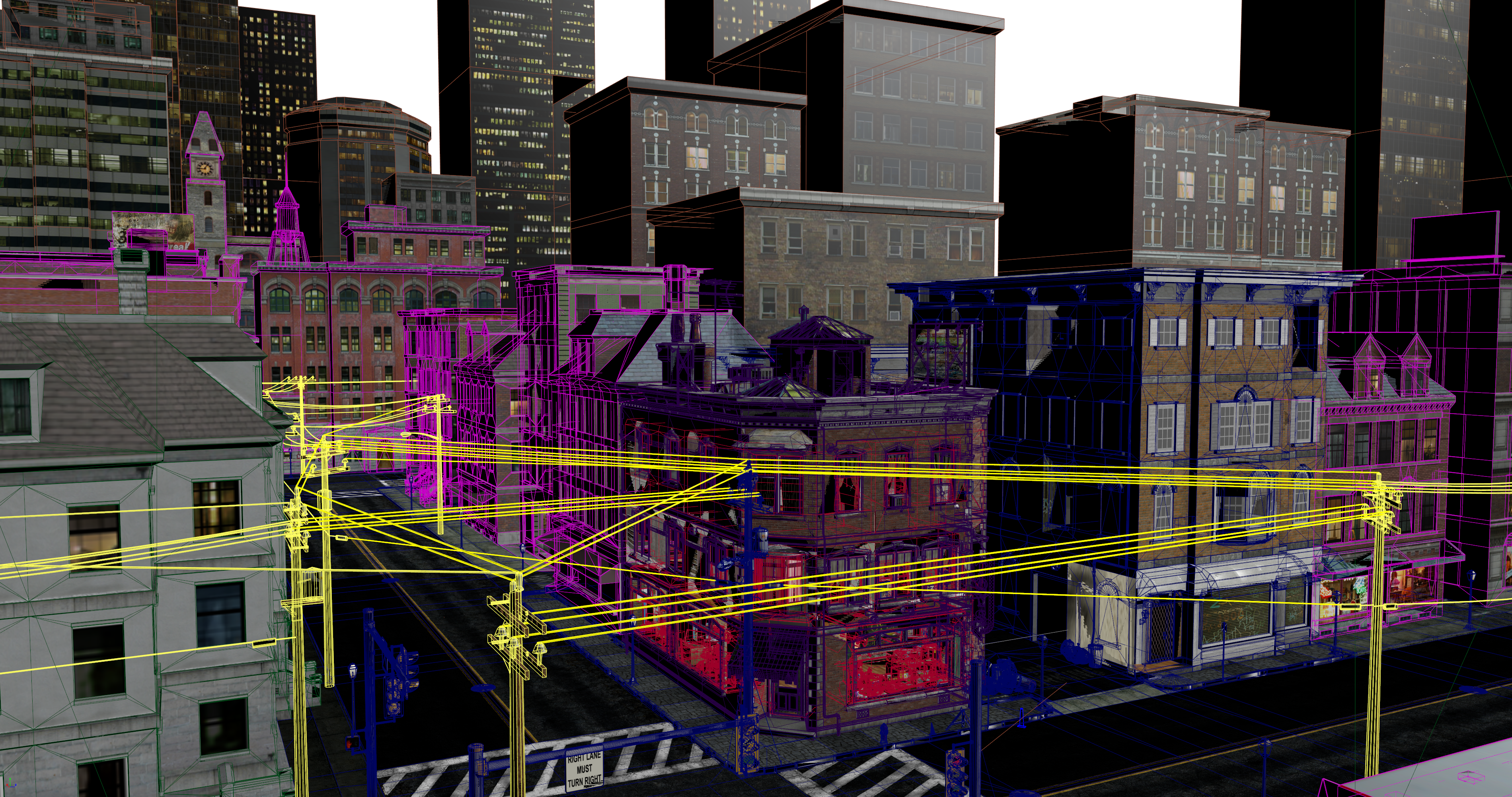 Shaded metroverse scene with a wireframe outline