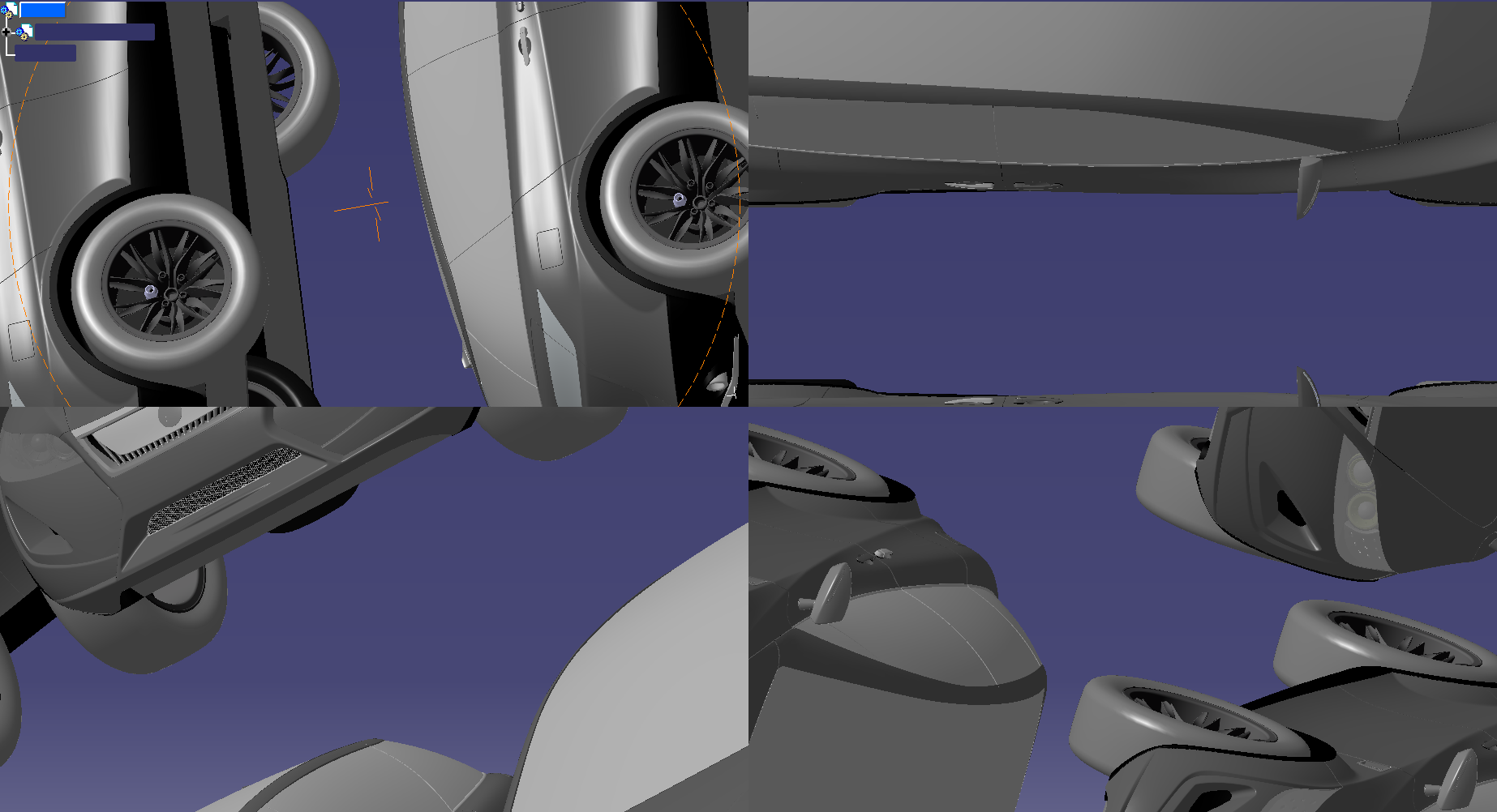 Wireframe metroverse scene on quad viewports