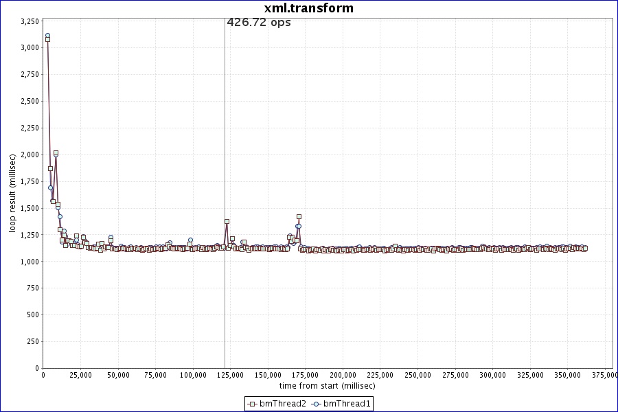 | xml.transform | number of threads: 2 minIter: 1 maxIter: 1 warmup time: 120000 run time: 240s |